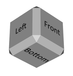 edgeStyle. The edges can form a sharp corner, be rounded or be flat (beveled). The size of the edges and corners relative to the cube face is defined by the fieldedgeSize.Each flat face of the viewing cube can also be customized. By default the text Top/Bottom/Front/Back/Left/Right appears on the center of each face according to its orientation. The six fields