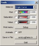The curves are drawn on a set of 3D logarithmic axes. The color of the curves can be changed, animation started and stopped, and the print options set up.