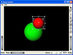 DemoCollider displays two scenes, one that can be manipulated to collide with the other. It shows how to use the SoDualSceneCollider node.