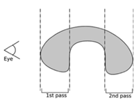 Applications implementing interactive volume sculpting, for example seismic applications for geobody extraction, may also find the SoScreenDrawer classes useful. These classes are related to draggers. Specifically they provide a platform independent way to allow the user to "draw" on the screen using a rectangle, ellipse, polygon or lasso. For example SoLassoScreenDrawer allows the user to free-hand draw a 2D shape on the shape then returns the points to the application at the end of the operation. The application can then use the utility class SbExtrusionGenerator to create a 3D shape by extruding the 2D outline along the current direction of view. The figure below shows an extruded polygon on the left and on the right the effect of using that shape as a clipping polygon in addition to the two clipping surfaces.