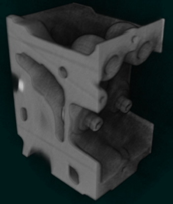 - You will find below illustrations showing how MIDA can easily highlight some internal features in this volume compared to the classical volume rendering mode.
