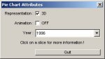 Using the dialog box, animation can be started and stopped, and the pie chart can be switched between 2D and 3D.