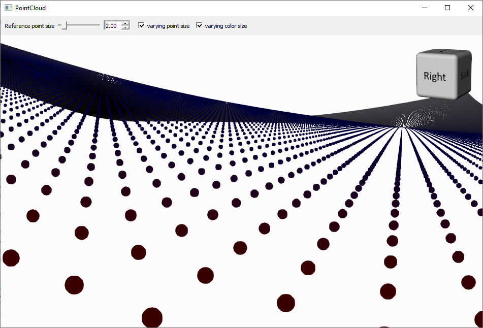 Procedurally generated point cloud using a custom shader in order to vary the size of the points. In this context, the point cloud is used to materialize a surface.