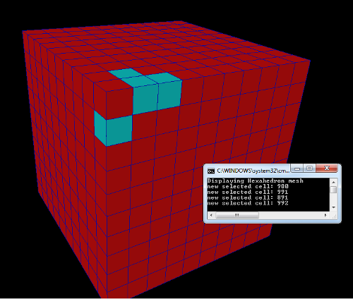 Move the mouse cursor over the mesh skin and click the left mouse button. Picked cells are drawn in cyan.