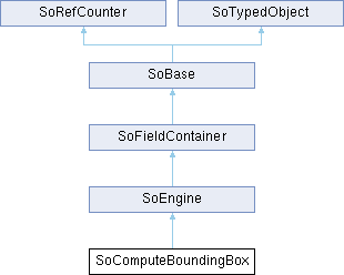 Inheritance diagram for SoComputeBoundingBox:Public Member Functions | |