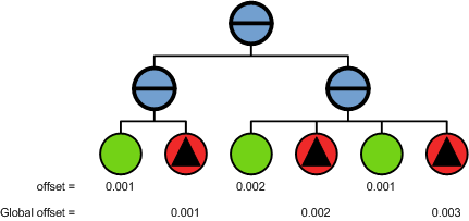 Note that if the accumulation of offset values during the traversal is greater than 1, the accumulated offset value is normalized so that, in this case, the offset values are not absolute but relative to each other.