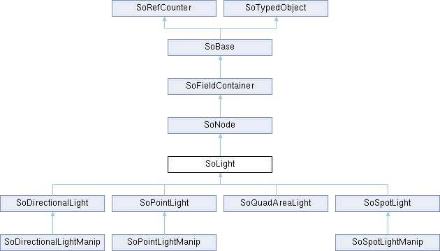 SoLight is the abstract base class for all light nodes. A light node defines an illumination source that may affect subsequent shapes in the scene graph, depending on the current lighting style. Light sources are affected by the current transformation. A light node under a separator does not affect any objects outside that separator.