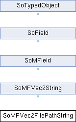 Inheritance diagram for SoMFVec2FilePathString:Public Member Functions | |