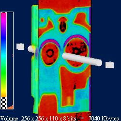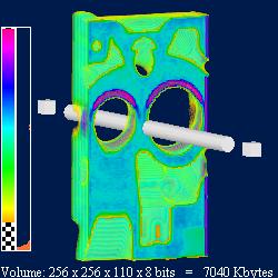 Optionally a bump mapping effect may be applied. Normal vectors are automatically computed from the data value gradient. The enableBumpMapping and bumpScale fields (SoSlice) control whether bump mapping is active and the intensity of the effect.
