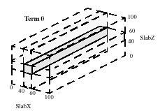 The bar can be formed in Term 0 of Stage 1 by using the intersection of the X and Z slabs, each with min and max values set to 40 and 60, respectively.