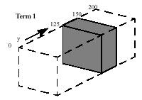 The box can be formed in Term 1 of Stage 1 by using just the Y slab, with min and max values set to 125 and 150.