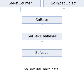 Inheritance diagram for SoTextureCoordinate2:Public Member Functions | |