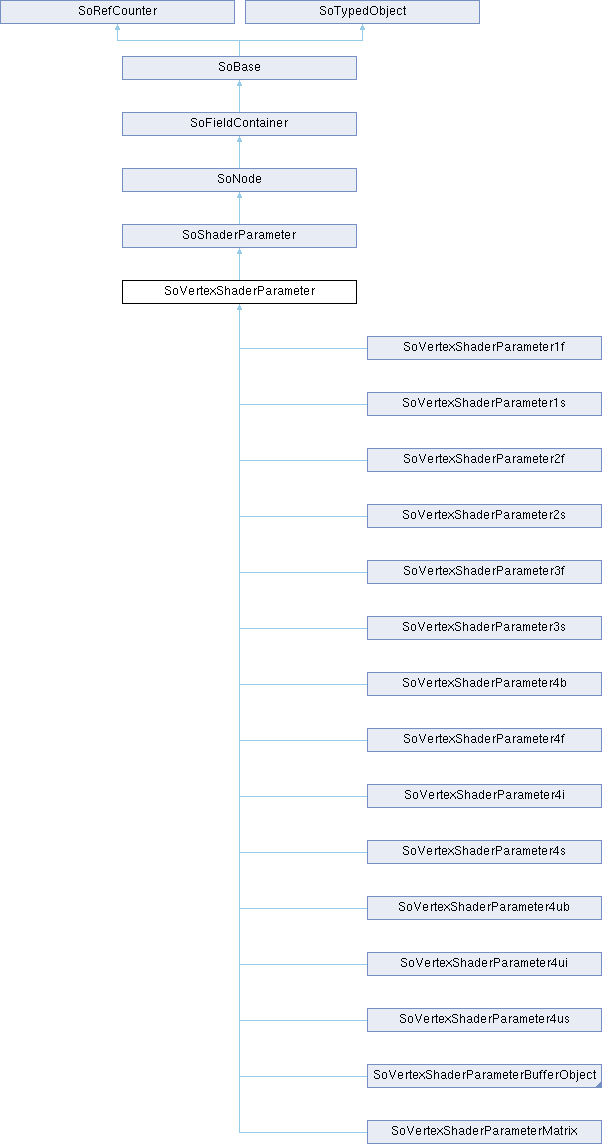 Inheritance diagram for SoVertexShaderParameter:Public Member Functions | |