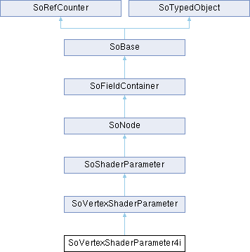 Inheritance diagram for SoVertexShaderParameter4i:Public Member Functions | |