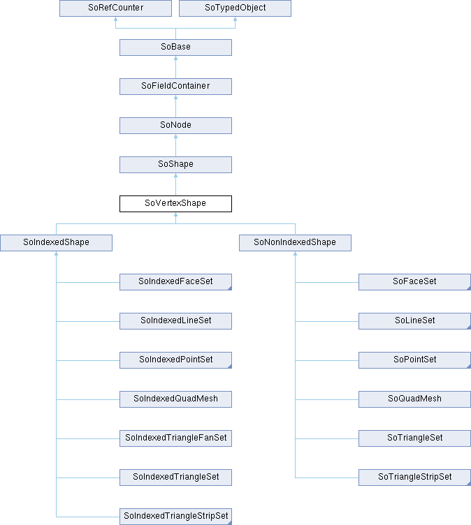 The subclass SoIndexedShape is a base class for vertex-based shapes that index into the current set of coordinates. The subclass SoNonIndexedShape is a base class for vertex-based shapes that use the current coordinates in order.