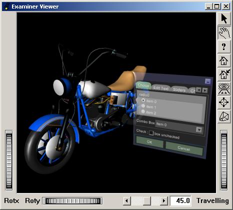 It enables you to create simple user interfaces in a platform-independent way. You can specify the user interface by loading its definition from an Open Inventor (.iv) file and/or you can specify it programmatically.