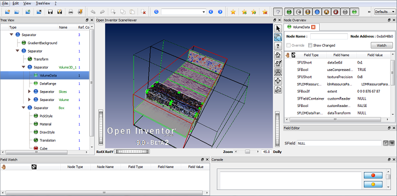 IvTune is an extensible, interactive tool that allows the user to inspect and modify Open Inventor scene graphs, even in a running application program. More...